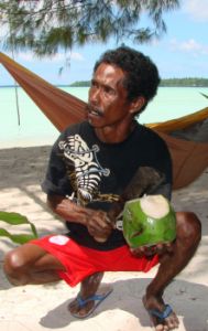 De mensen zijn hier erg vriendelijk en proberen het ons naar de zin te maken met mierzoete thee en koekjes. Omdat er op het eiland niet alles te koop is heeft Debby de nodige etenswaren meegenomen en zij gaat de komende 6 dagen voor ons koken geholpen door een 4-tal vrouwen uit het dorp. Vandaag de eerste keer deze reis en ik kan wel zeggen dat het goed gelukt is. 's Avonds is er nog steeds geen stroom, maar om een uur of 9 gaat dan toch het licht aan, behalve in de slaap- en mandikamer blijft het bij een kaarsje omdat er gewoon geen lampje is. We slapen niet echt goed de eerste nacht, blody hot en erg lawaaiig. TV keihard in de andere kamer en heel de nacht horen we een zangkoor (blijkt dat volgens de Adat heel de nacht gezongen moet worden voor iemand die 40 dagen geleden is overleden, einde van de rouwtijd). Verder nog jankende katten, kraaiende hanen, roepende moskee en zware motoren. Het is even wennen dus. |