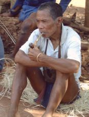 Ze waren net met geraamte van een nieuw gemeenschapshuis bezig (soort dorpshuis) met heel veel mankracht, waarvan de meesten langs de kant een pijpje zaten te roken. Bijna aandoenlijk is het om te ervaren hoe makkelijk de mannen zich laten fotograferen, door hun karakteristiek gegroefde koppen maken wij daar dankbaar gebruik van. Als je ze het laat terug zien op de digitale camera's hebben ze de grootste pret.
