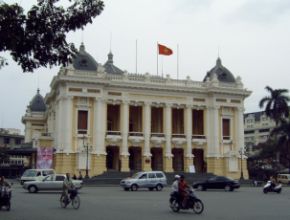 ![]() | Ten zuiden van het HOAN KIEM meer ligt de FRANSE wijk met zijn koloniale gebouwen en een tamelijk luxe warenhuis. In de wijk staat ook het OPERAGEBOUW dat een copie is van de Opera in Parijs. | ![]() |